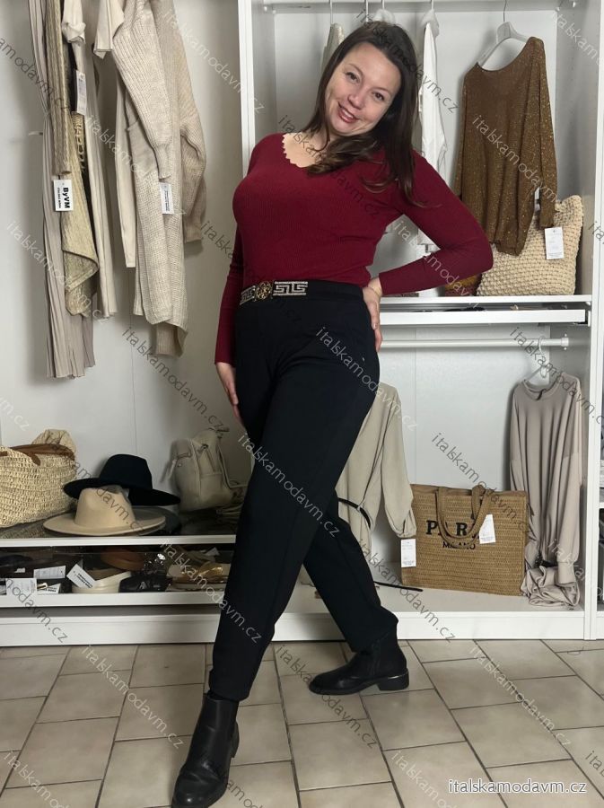 ZBOŽÍ (22753) > Kalhoty elegantní s páskem dámské BELLA (S/M/L ONE SIZE) ITALSKÁ MÓDA IMD25251/DUR S/M/L vínová