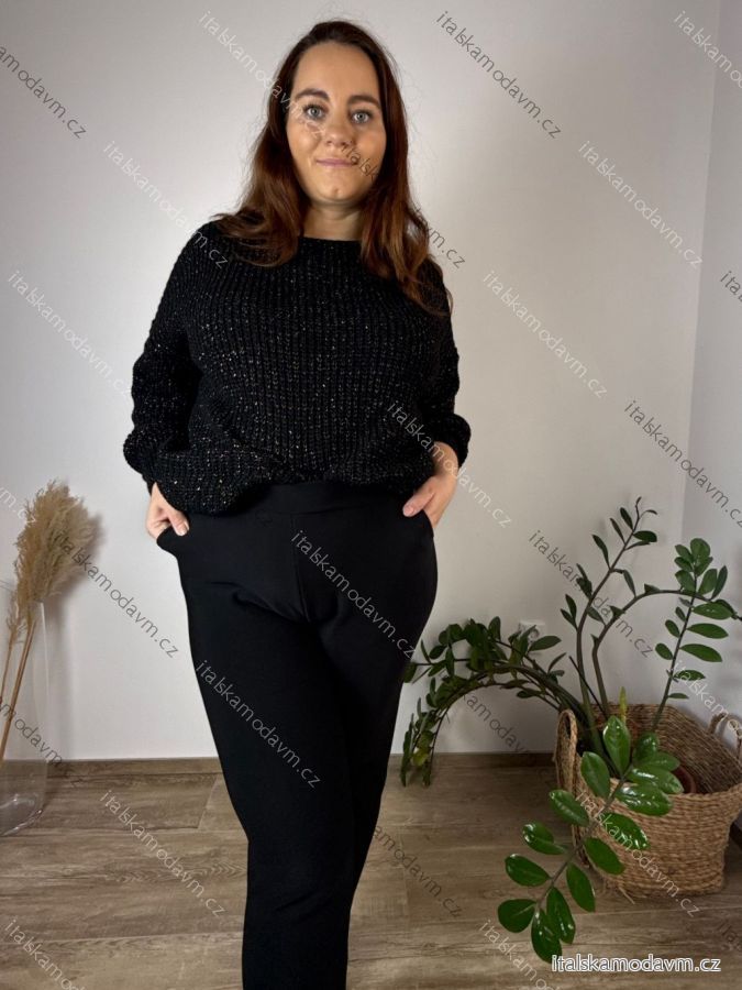 Kalhoty s vysokým pasem dlouhé dámské nadrozměr (30-42) M.SARA MSR25JR024MDG7261-13/DU 34 Černá