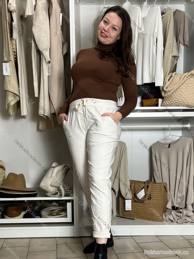 Kalhoty strečové mačkáče zateplené dlouhé dámské PANTALONE (S/M/L ONE SIZE) ITALSKÁ MÓDA IMPOZ25OL-5591/DUR ornažová cihlová S/M/L