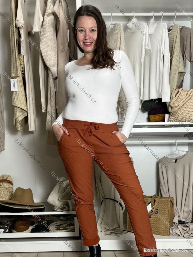 ZBOŽÍ (22368) > Kalhoty strečové mačkáče zateplené dlouhé dámské PANTALONE (S/M/L ONE SIZE) ITALSKÁ MÓDA IMPOZ25OL-5591/DUR ornažová cihlová S/M/L
