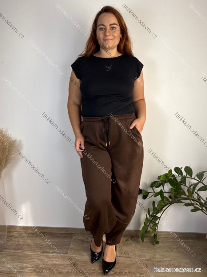 Kalhoty/tepláky volnočasové máslové balónové dámské nadrozměr (46/48/50 ONE SIZE) ITALSKÁ MÓDA IM425699