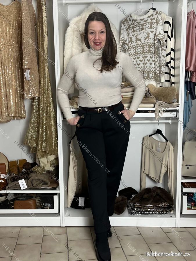 Kalhoty volnočasové s páskem dámské (S/M/L ONE SIZE) ITALSKÁ MÓDA IM425823/DU S/M/L Černá
