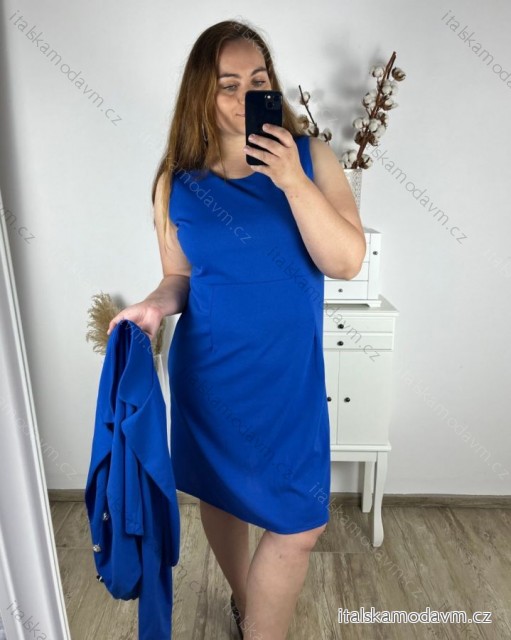 Komplet šaty a sako s dlouhým rukávem dámská (XL/2XL ONE SIZE) ITALSKÁ MÓDA IM424DIANA/DR XL/2XL modrá královská