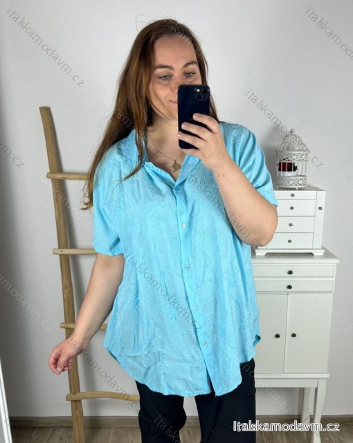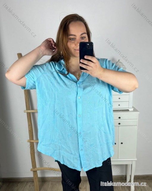 ZBOŽÍ (23776) > oblečenie dámske (18950) > Topy, tričká, tuniky a tielka (2586) > Košeľa krátký rukáv dámska nadrozmer (3XL/4XL ONE SIZE) TALIANSKA MÓDA IMWQ24087/DUR 3XL / 4XL svetlo modrá