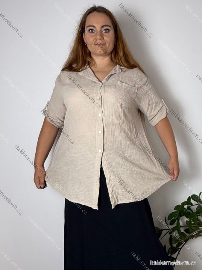 Košeľa mušelínová dlhý rukáv dámska nadrozměr ADIGE (50/52/54 ONE SIZE) TALIANSKA MÓDA IM424299/DU béžová 50/52/54