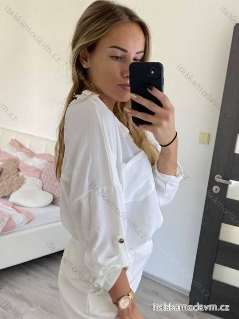 Košeľa oversize dlhý rukáv dámska (S/M/L ONE SIZE) TALIANSKA MÓDA IMWY22433/DR bílá