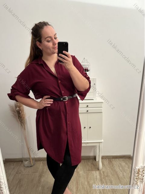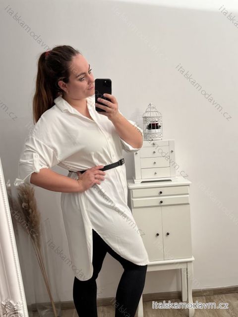 Košeľa predĺžená/šaty košeľové s opaskom dlhý rukáv dámske nadrozmer (XL/2XL ONE SIZE) TALIANSKA MÓDA IMPBB222713DS/DR XL/2XL čierna