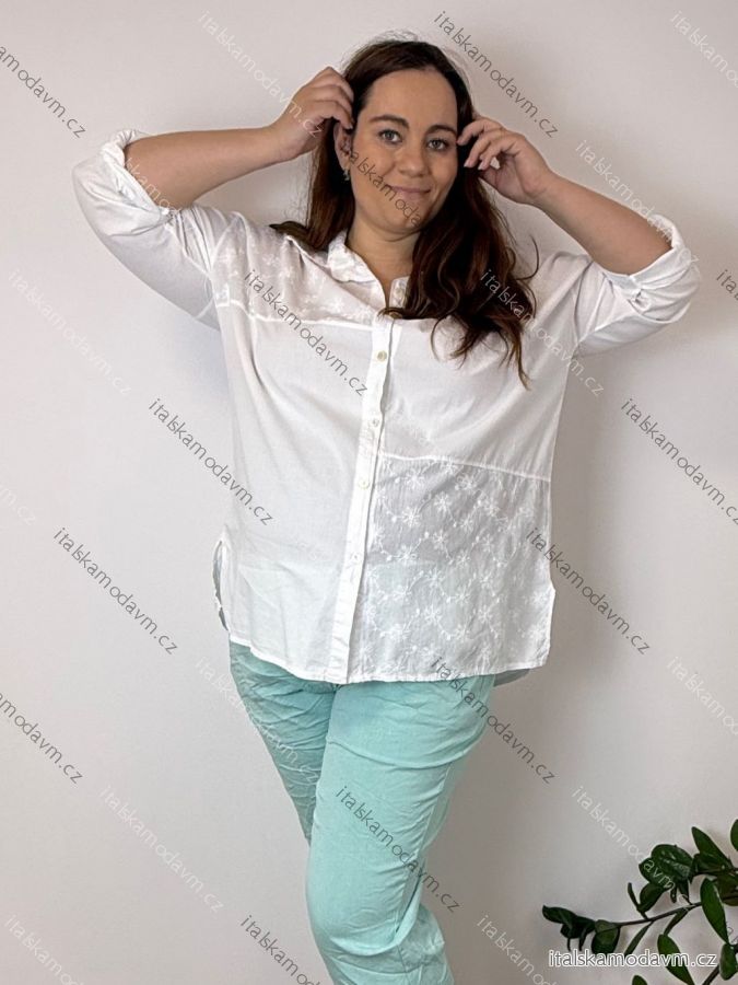 Košile 3/4 dlouhý rukáv dámská nadrozměr (54/56/58 ONE SIZE) ITALSKÁ MÓDA IMSM260016/DU 54/56/58 bílá
