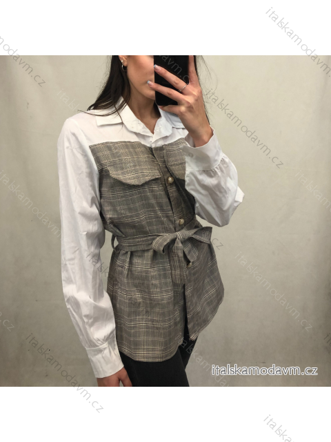 Košile dlouhý rukáv dámská (S/M ONE SIZE) ITALSKÁ MÓDA IMM21282/DR S/M one size hnědá
