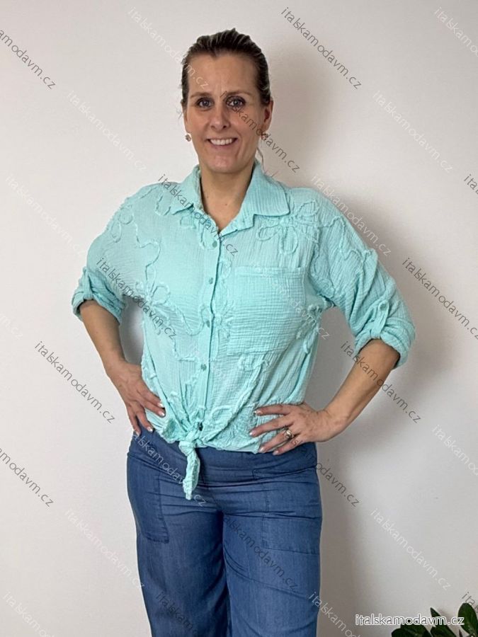Košile mušelínová 3/4 dlouhý rukáv dámská DITA (S/M/L ONE SIZE) ITALSKÁ MÓDA IMWDL260001/DU S/M/L světle mintová