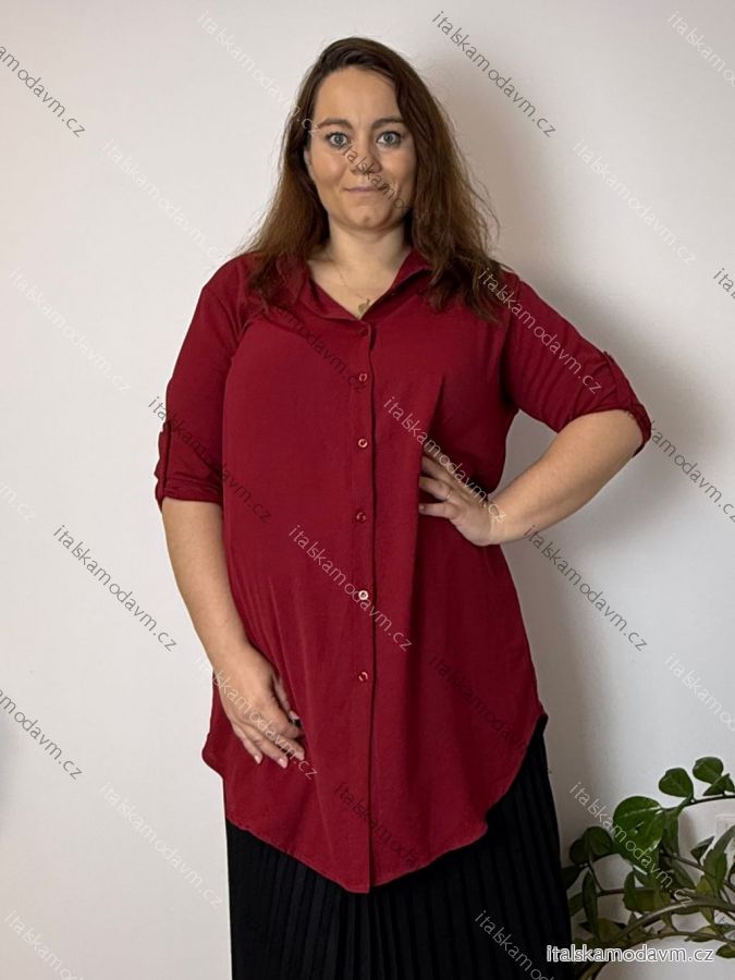 ZBOŽÍ (21818) > Košile prodloužená dlouhý rukáv dámská nadrozměr RAMONA (50/52/54 ONE SIZE) ITALSKÁ MÓDA IMD25139/DU 50/52/54 zelená