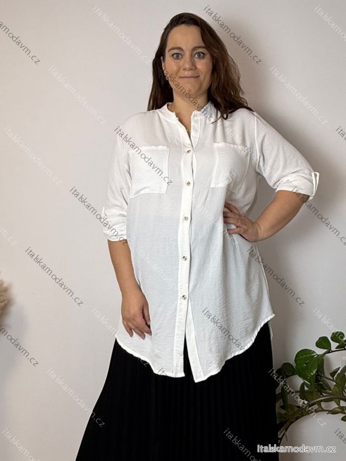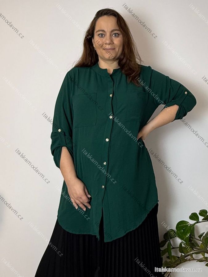 Košile prodloužená dlouhý rukáv dámská nadrozměr RAMONA (50/52/54 ONE SIZE) ITALSKÁ MÓDA IMD25139/DU 50/52/54 zelená
