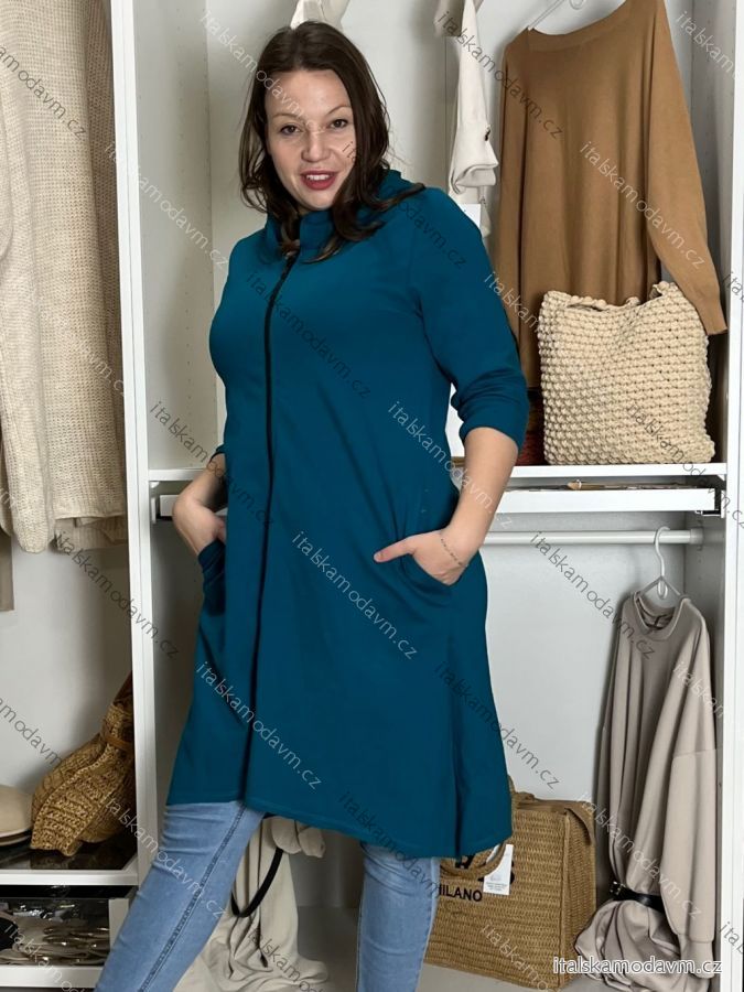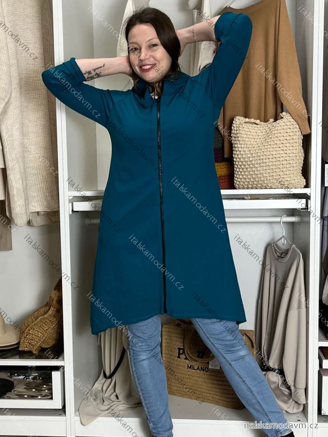 Mikina kabát oversize na zip s kapucí dlouhý rukáv dámský KAILA (S/M/L ONE SIZE) ITALSKÁ MÓDA IMPLI2430059/DU S/M/L modrá petrolejová