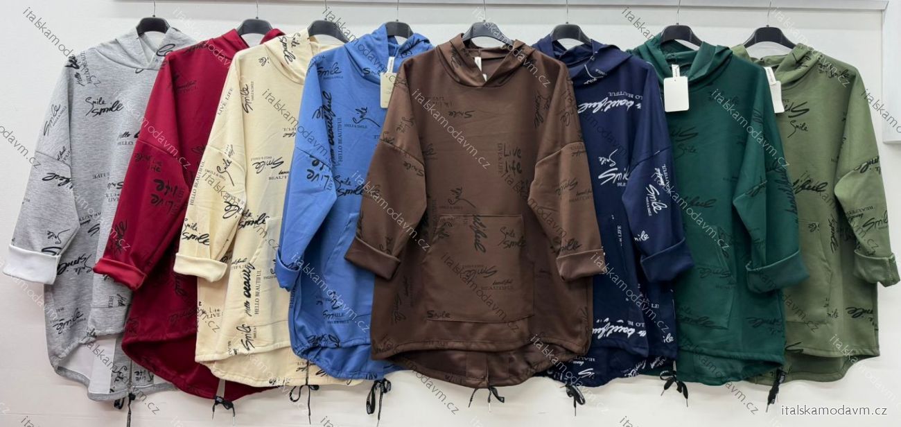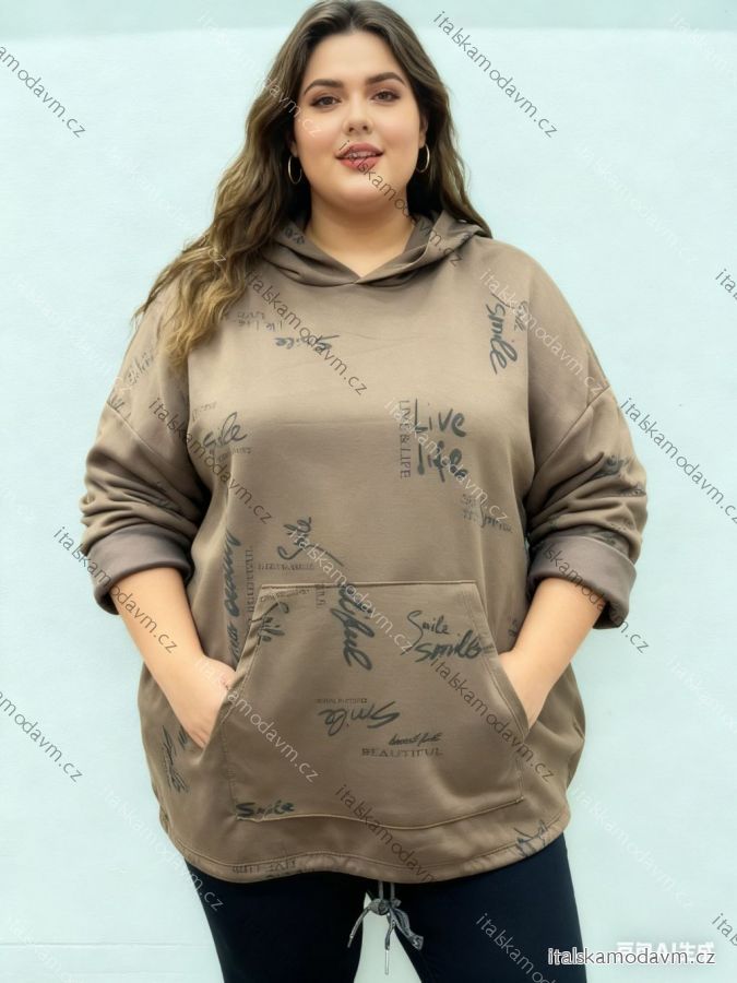 ZBOŽÍ (22025) > Mikina máslová s kapucí dlouhý rukáv dámská nadrozměr (54/56/58 ONE SIZE) ITALSKÁ MÓDA IM425870