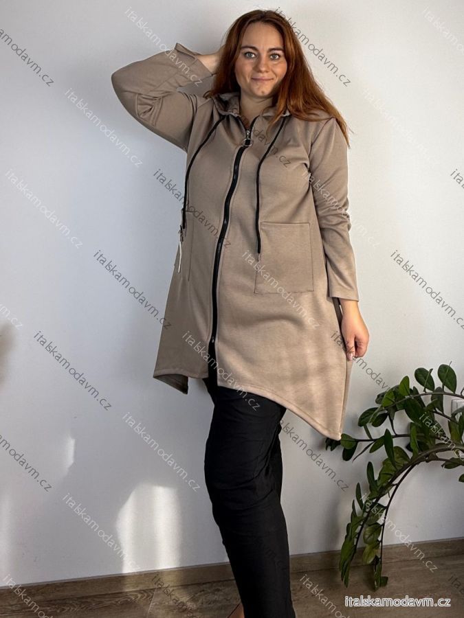 ZBOŽÍ (22804) > oblečenie dámske (18628) > Mikiny a cardigany (582) > mikiny predĺženej (159) > Mikina na zips s kapucňou dlhý rukáv dámska nadrozměr LAJLA (48/50/52 ONE SIZE) TALIANSKA MÓDA IMPOZ253107