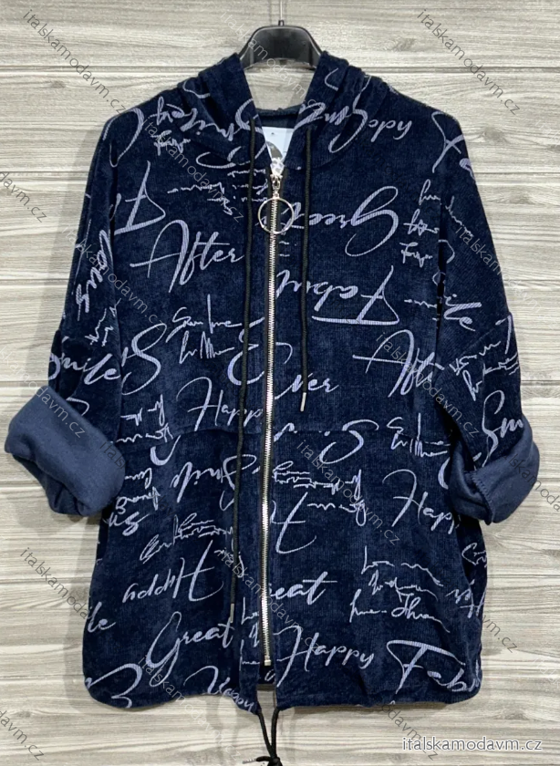 Mikina oversize na zip s kapucí dlouhý rukáv dámská WRITE (M/L/XL ONE SIZE) ITALSKÁ MÓDA IMPOZ25JSD-16583