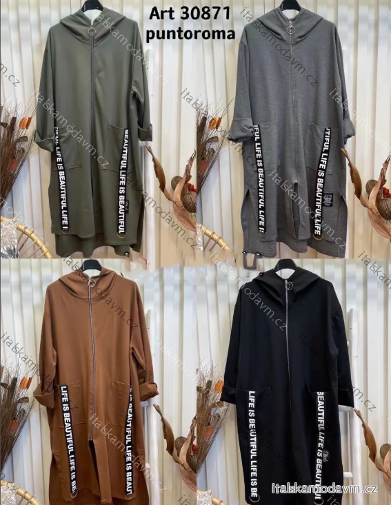 Mikina oversize prodloužená na zip dlouhý rukáv dámská (S/M/L ONE SIZE) ITALSKÁ MÓDA IMPLI2530871