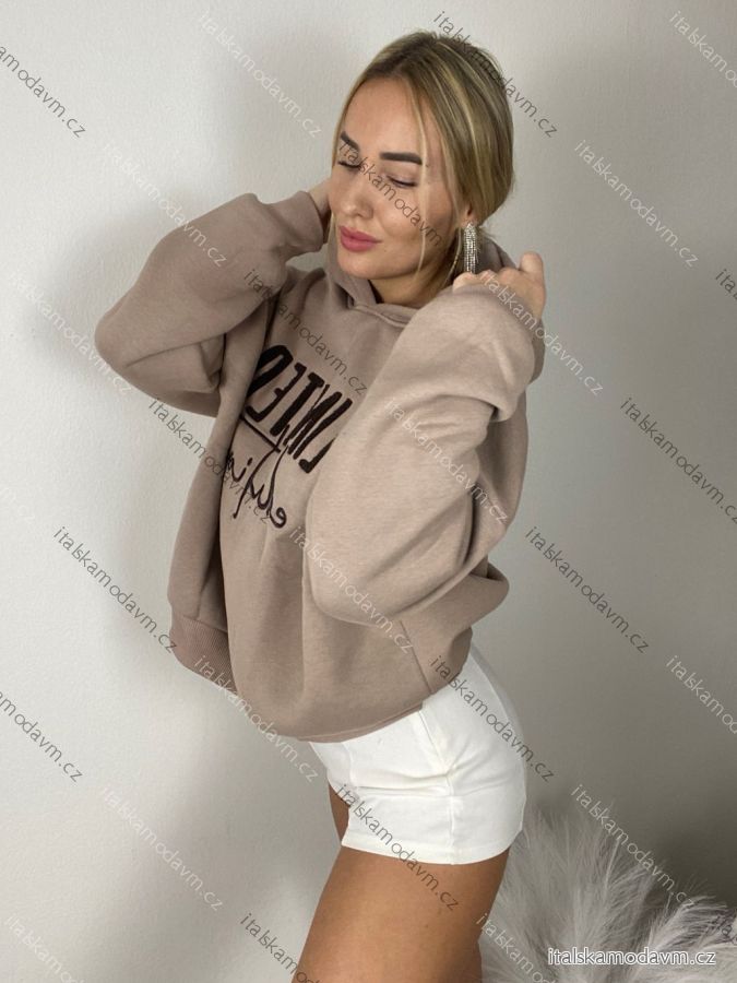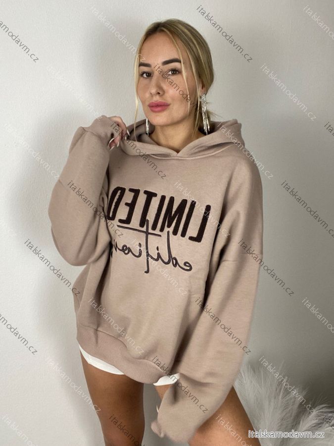 Mikina oversize s kapucí dlouhý rukáv dámská (S/M/L ONE SIZE) Turecká MÓDA TMWH251111/DR S/M/L hnědá