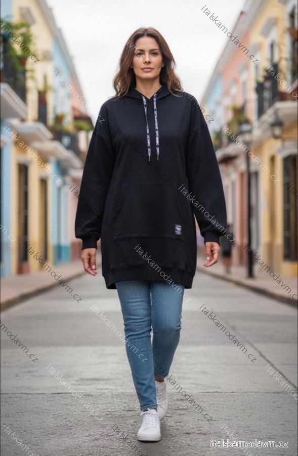 Mikina predĺžená s kapucňou dlhý rukáv dámska nadrozměr (46/48/50 ONE SIZE) TALIANSKA MÓDA IMD25283