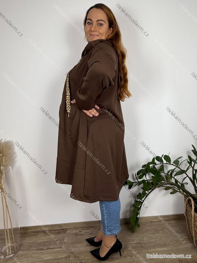 Mikina predĺžená s kapucňou na zips dlhý rukáv dámska nadrozmer ZITA (54/56/58 ONE SIZE) TALIANSKA MÓDA IMC25394