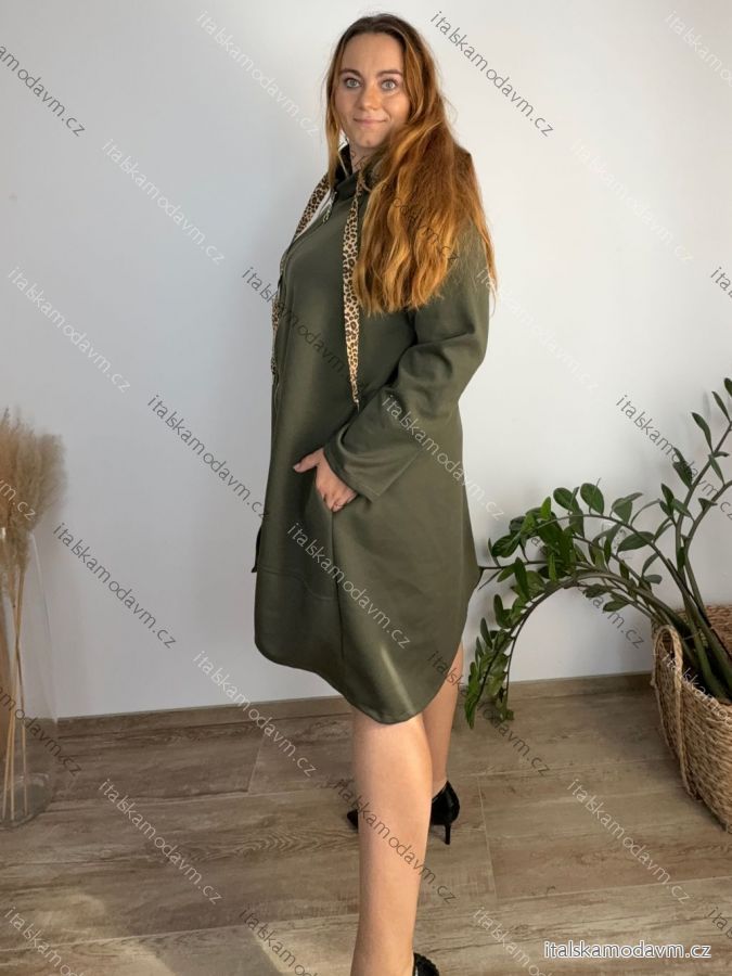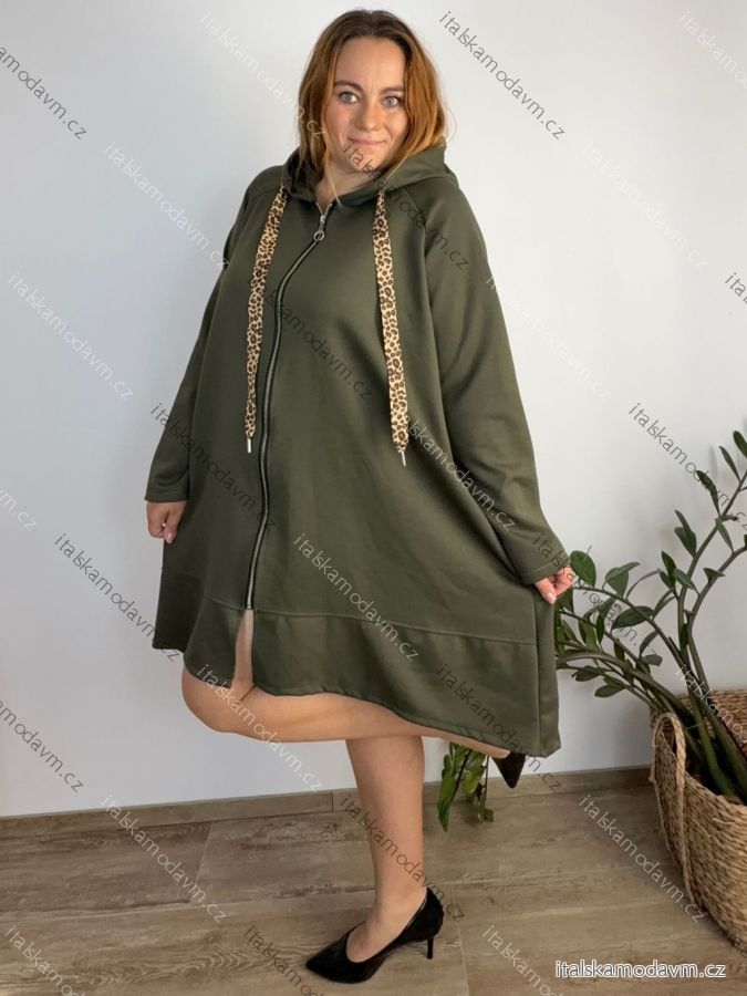 Mikina prodloužená s kapucí na zip dlouhý rukáv dámská nadrozměr ZITA (54/56/58 ONE SIZE) ITALSKÁ MÓDA IMC25394/DR 54/56/58 zelená khaki
