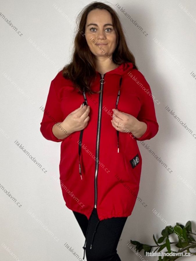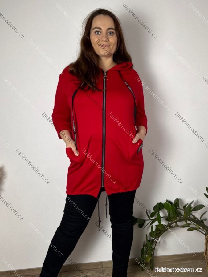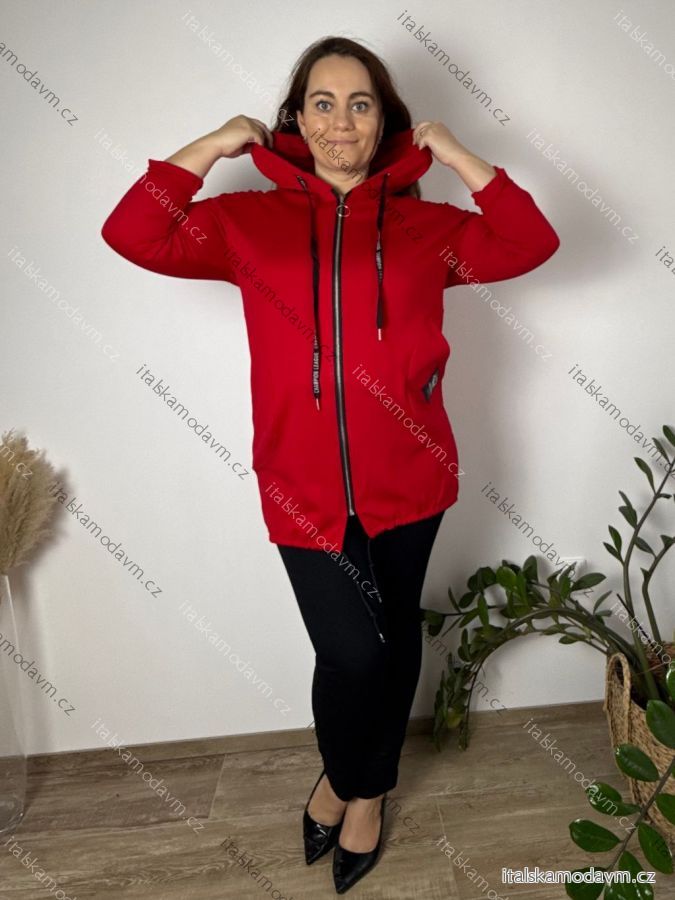 Mikina slabá na zip s kapucí dlouhý rukáv dámská nadrozměr BELLA (46/48/50 ONE SIZE) ITALSKÁ MÓDA IMSM25198/DU 46/48/50 červená