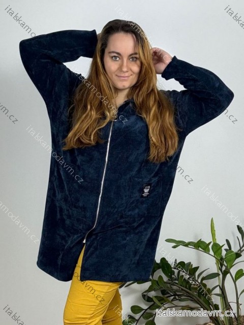 Mikina teplá dlhý rukáv dámska nadrozmer (54/56/58 ONE SIZE) TALIANSKA MÓDA IMBM24MENSY/DU tm. modrá 56/58