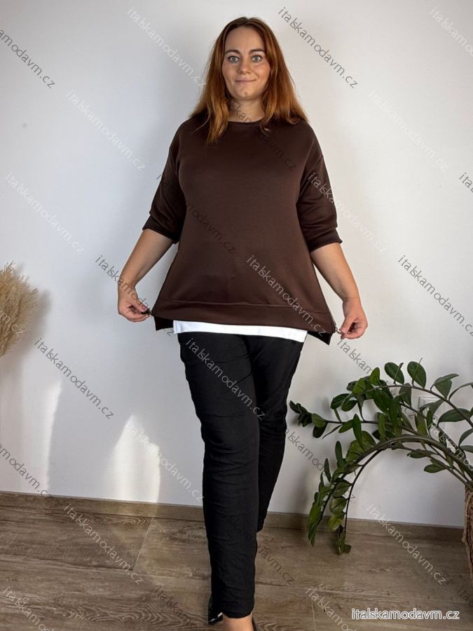 Mikina teplá dlouhý rukáv dámská nadrozměr (46/48/50 ONE SIZE) ITALSKÁ MÓDA IM425570/DUR 46/48/50 hnědá