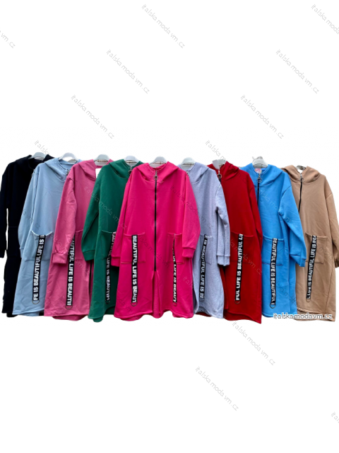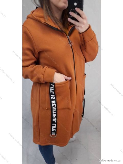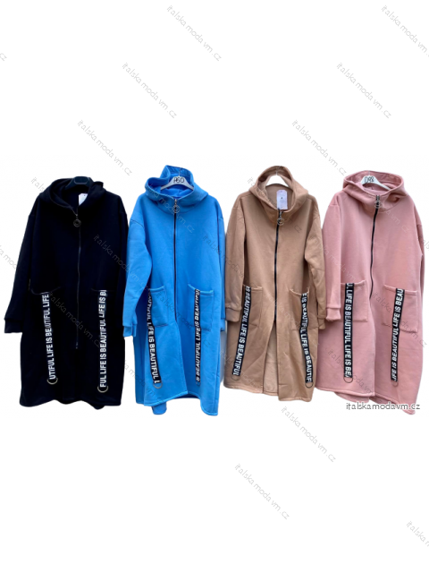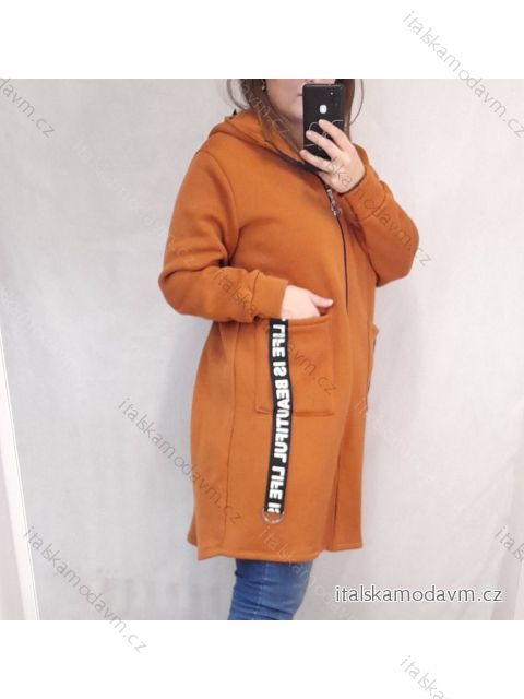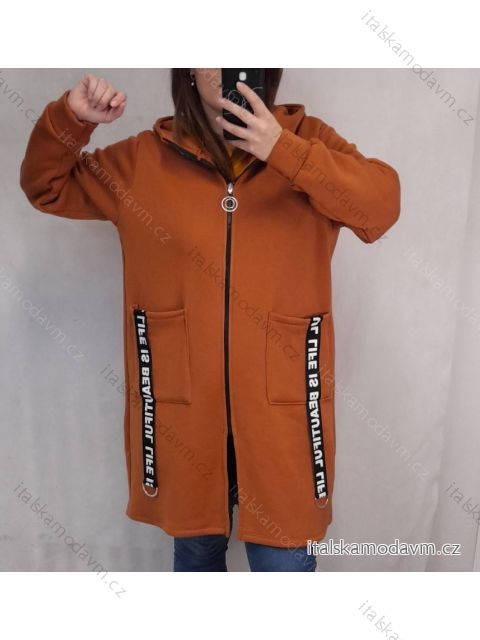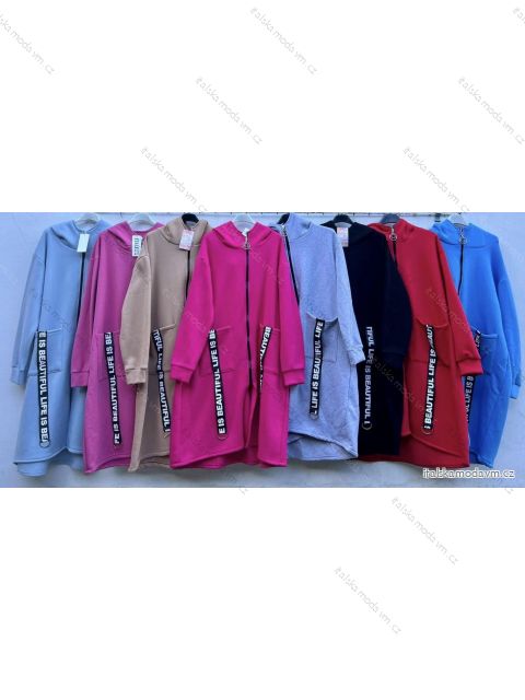 Mikina teplá oversize prodloužená dlouhý rukáv na zip s kapucí dámská nadrozměr (2XL/3XLONE SIZE) ITALSKÁ MÓDA IMD22740
