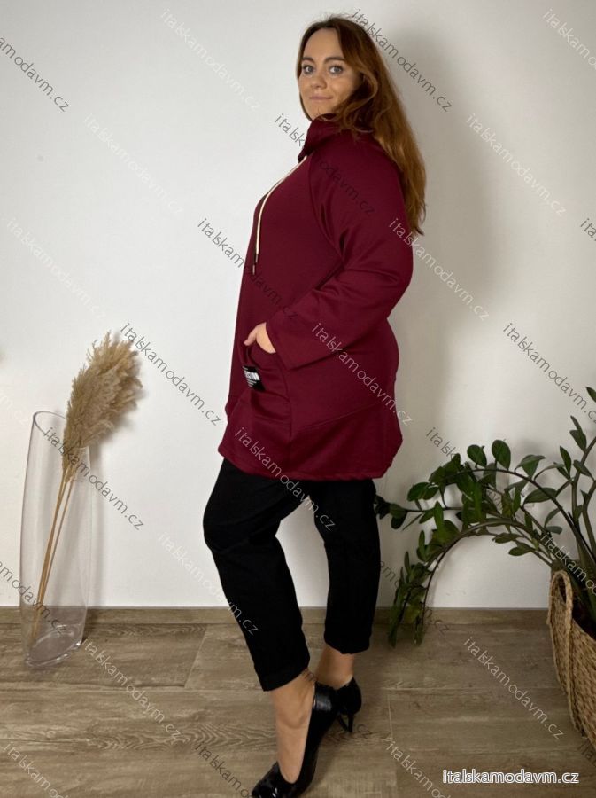 ZBOŽÍ (21713) > Mikina teplá s kapucí dlouhý rukáv dámská nadrozměr RENATA (54/56/58 ONE SIZE) ITALSKÁ MÓDA IM425696/DR 54/56/58 vínová
