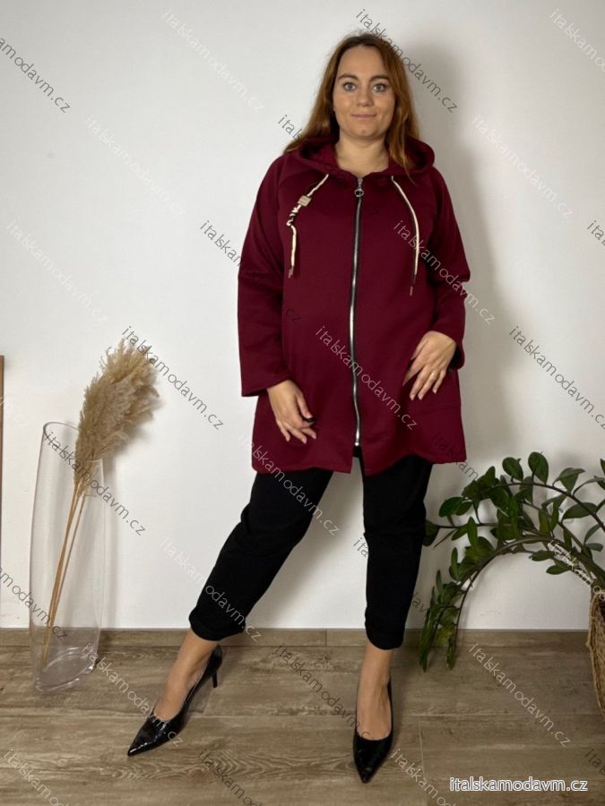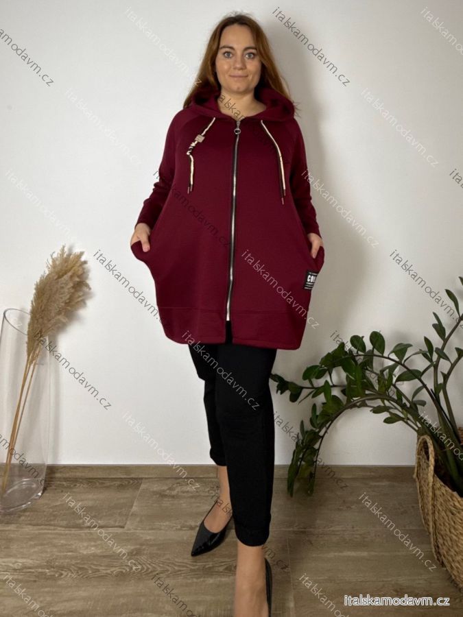 Mikina teplá s kapucí dlouhý rukáv dámská nadrozměr RENATA (54/56/58 ONE SIZE) ITALSKÁ MÓDA IM425696/DR 54/56/58 vínová