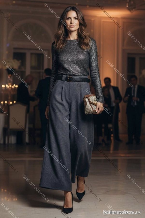 ZBOŽÍ (21971) > Nohavice dlhé elegantné s opaskom dámske (S/M/L ONE SIZE) TALIANSKA MÓDA IMD25327