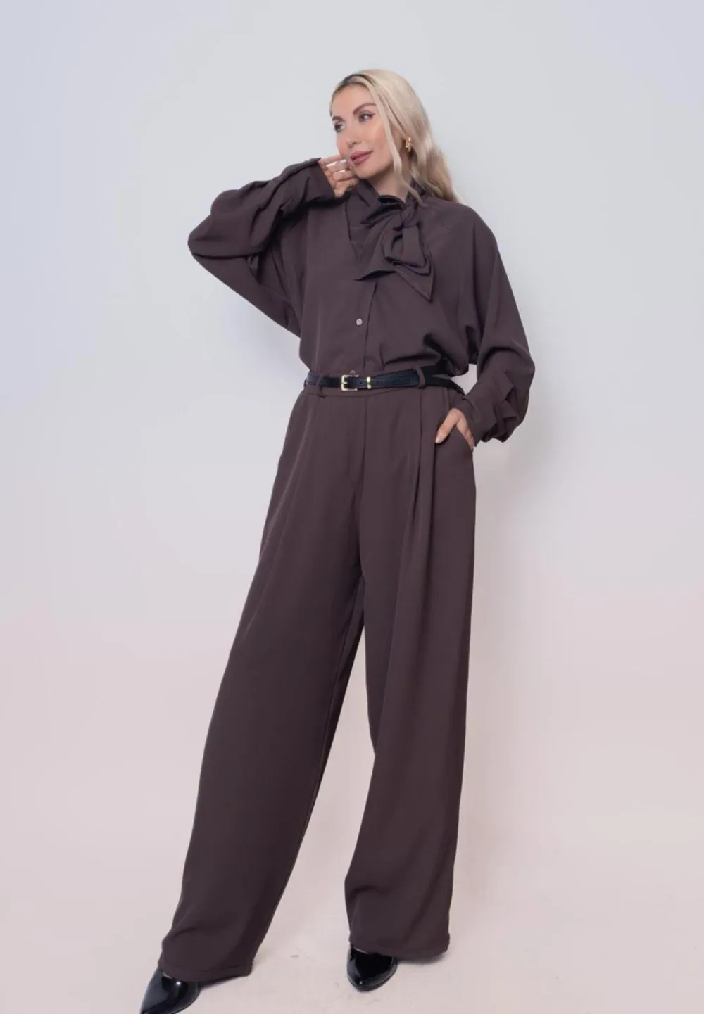 Nohavice dlhé elegantné s opaskom dámske (S/M/L ONE SIZE) TALIANSKA MÓDA IMPLI2651566