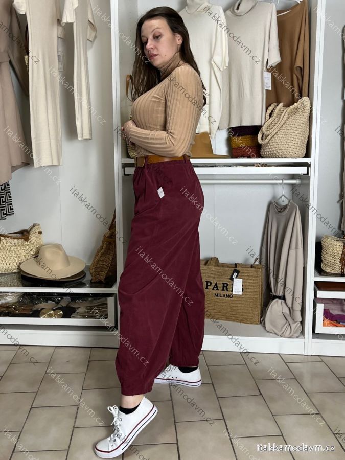 ZBOŽÍ (21991) > Nohavice manžestrové s opaskom dámske BARBARA (S/M/L ONE SIZE) TALIANSKA MÓDA IMSM251146/DU S/M/L vínová