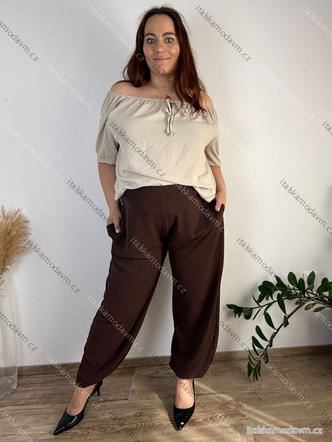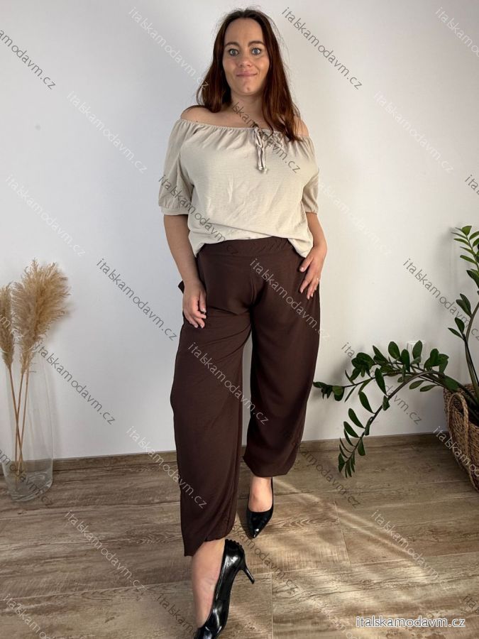 ZBOŽÍ (22220) > Nohavice oversize dlhé letné dámske nadrozmer KAROL (42/44/46 ONE SIZE) TALIANSKA MÓDA IM42600012/DU tmavo hnedá