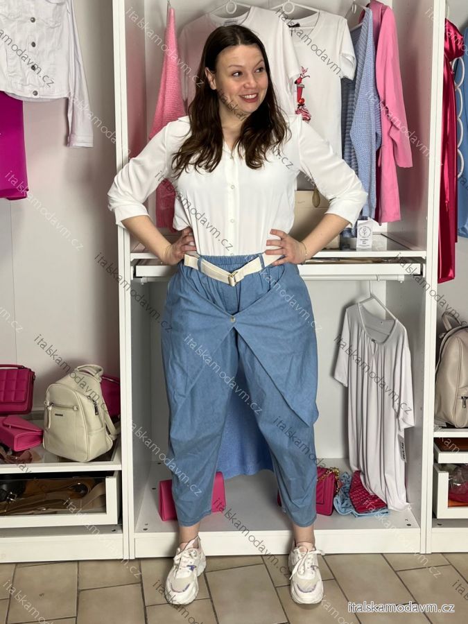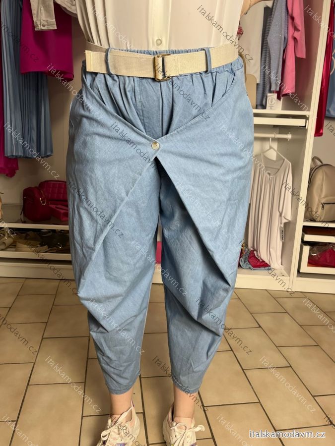 Nohavice voľnočasové riflové s opaskom dámske VERONA (S/M/L ONE SIZE) TALIANSKA MÓDA IMD26028/DU S/M/L svetlo modrá
