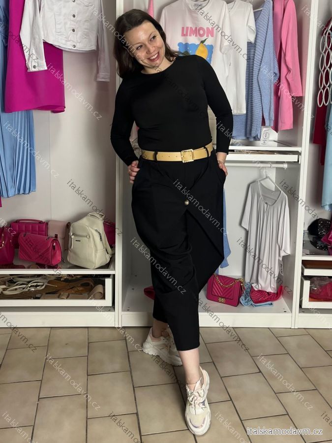 ZBOŽÍ (22168) > Nohavice voľnočasové s páskem dámske ELEN (S/M/L ONE SIZE) TALIANSKA MÓDA IMC26070/DU S/M/L čierna