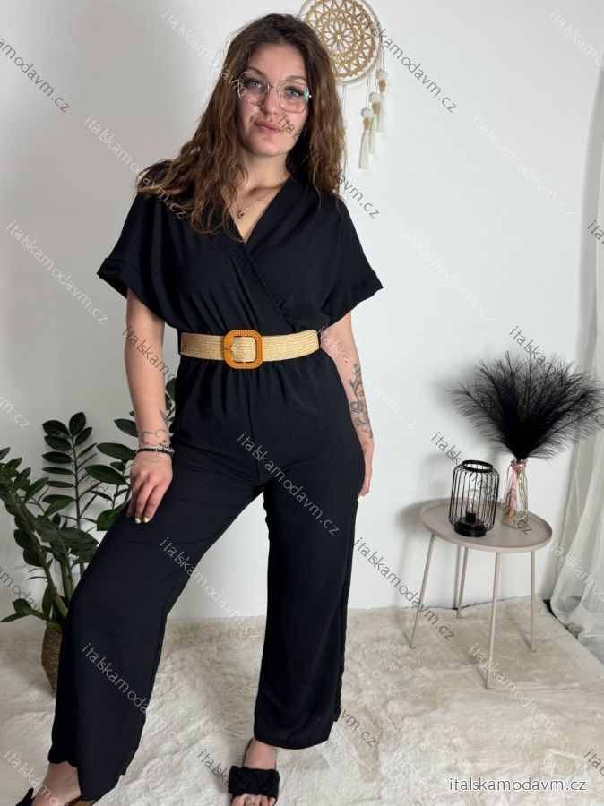 Overal dlouhý s páskem krátký rukáv dámské (S/M/L ONE SIZE) ITALSKÁ MÓDA IMWCN24010/DUR - Černá - M/L