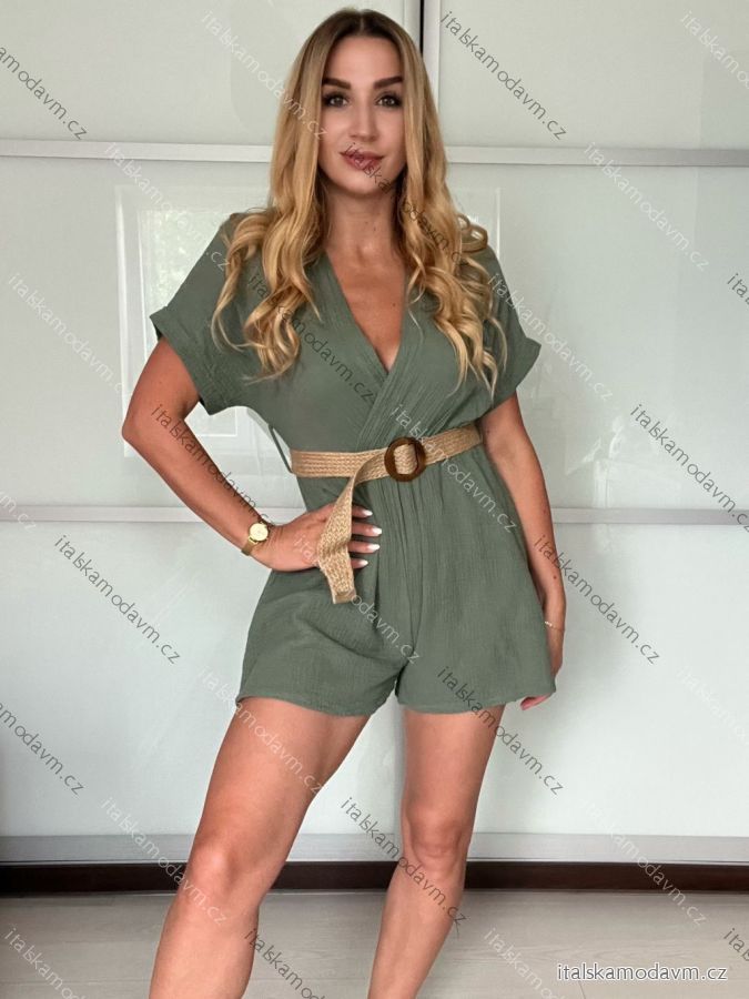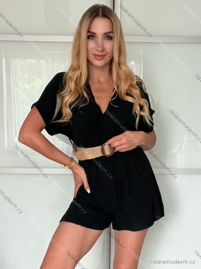 ZBOŽÍ (23008) > Overal krátký letní mušelínový s páskem krátký rukáv dámský (S/M ONE SIZE) ITALSKÁ MÓDA IM3250002/DU - Černá - S/M