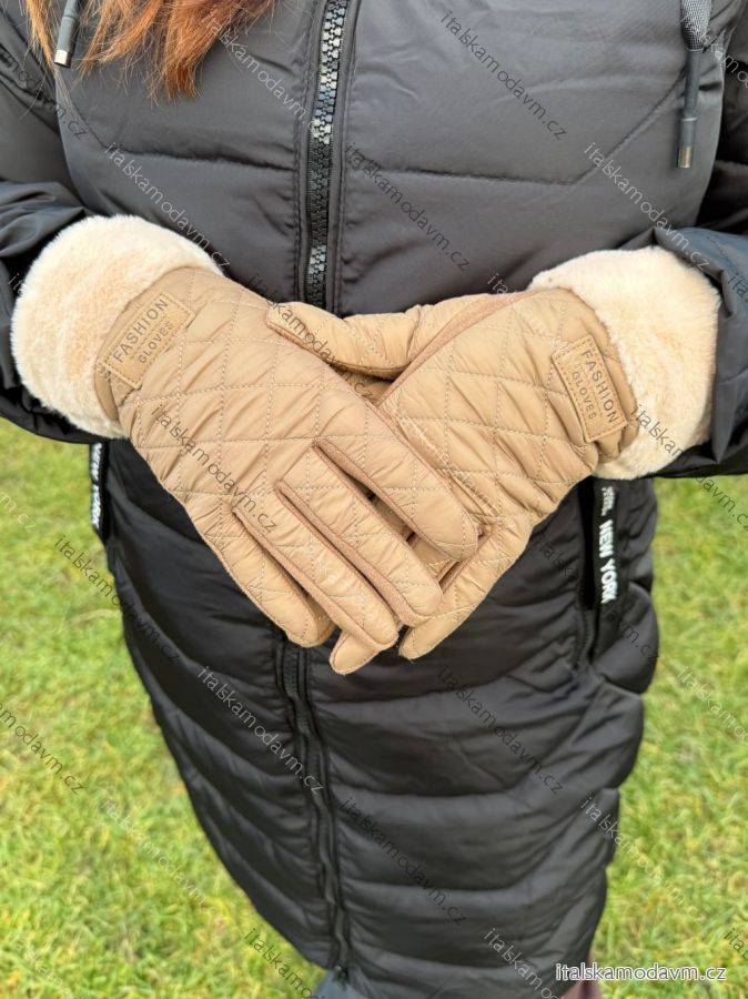 Rukavice zimné s kožúškom dámske (ONE SIZE) QGJ TREND LIS25ST-544/DUR ONE SIZE béžová