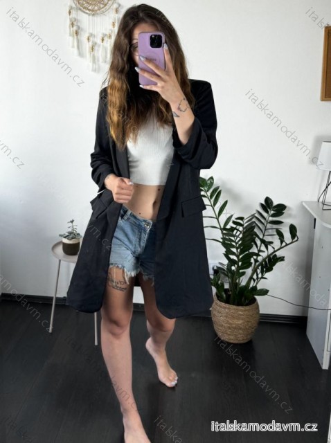 Sako dlouhý rukáv dámské (S/M/L ONE SIZE) ITALSKá MóDA IMC24081 Černá M/L