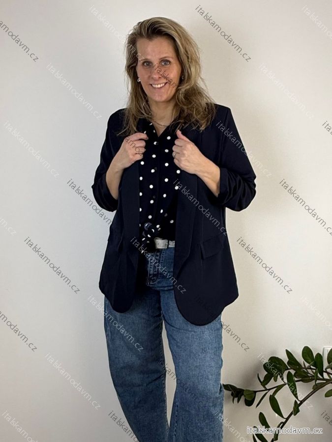 Sako elegantný dlhý rukáv dámske nadrozmer CHRISTIE (42/44/46 ONE SIZE) TALIANSKA MÓDA IM426039/DUR čierna