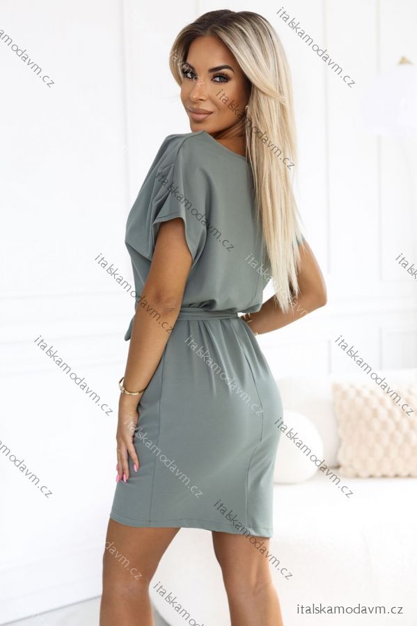 ZBOŽÍ (21935) > Šaty 240-4 ROXI s asymetrickou sukňou a opaskom - olivovej farby