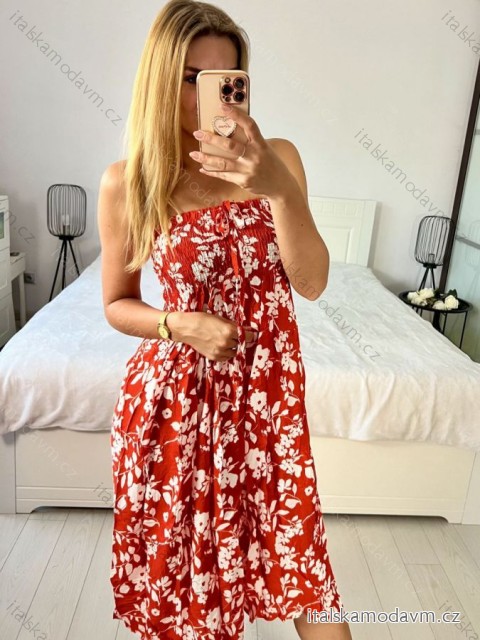 Šaty alá sukně žabičkované letné dámske (M/L, XL/2XL ONE SIZE) IMB24191/DUR - červená - XL/2XL
