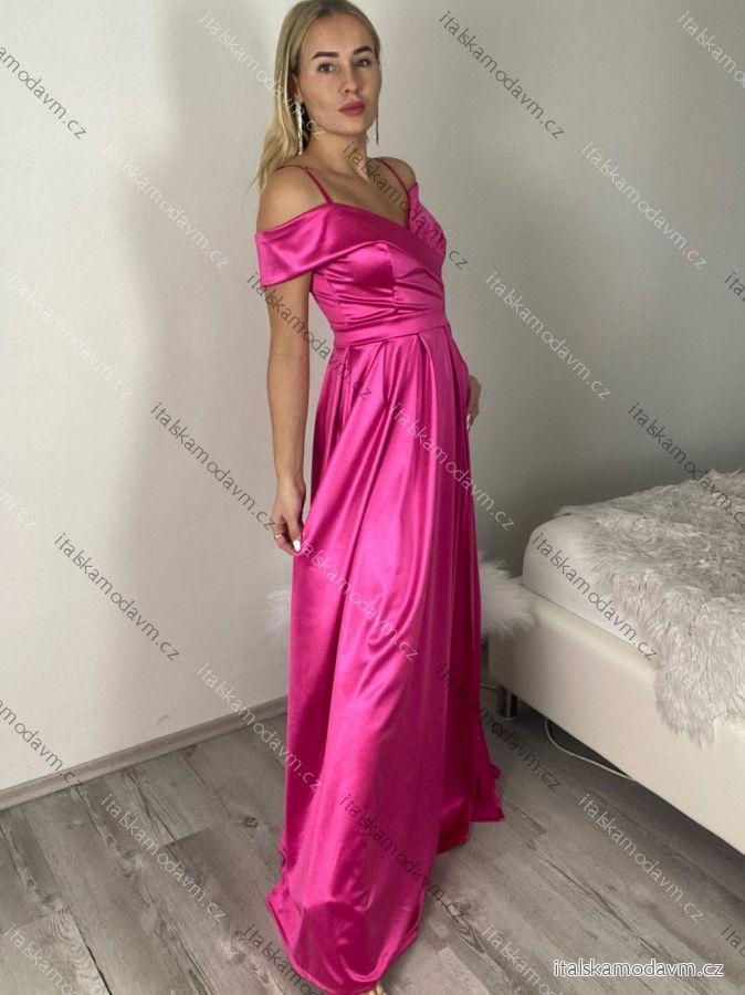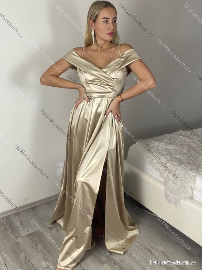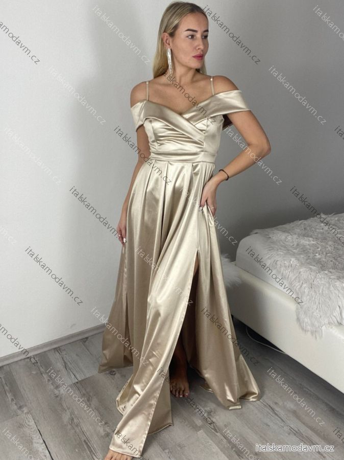 ZBOŽÍ (22026) > Šaty carmen dlouhé na ramínka elegantní saténové dámské (S/M ONE SIZE) ITALSKÁ MÓDA IMPBB22B22735/DR bílá