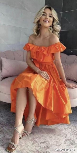šaty carmen plátené dlhé dámske (S/M ONE SIZE) TALIANSKA MÓDA IMHMS24233
