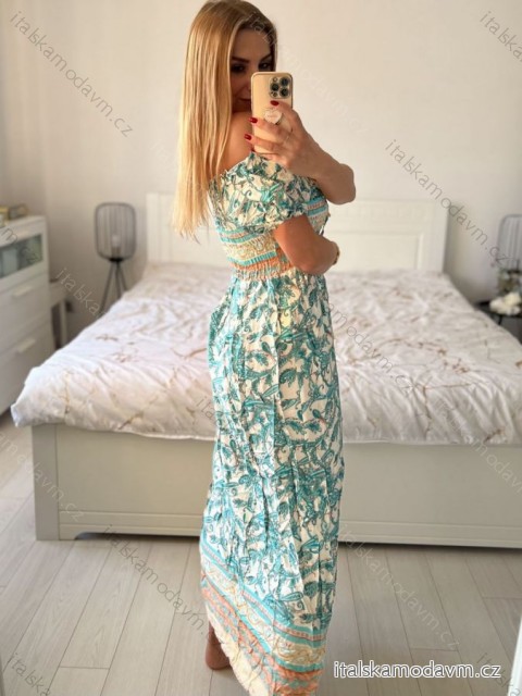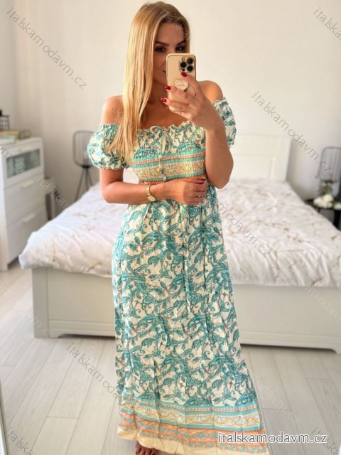 Šaty carmen žabičkované letné krátky rukáv dámske (M/L, XL/2XL ONE SIZE) TALIANSKA MÓDA IMB23Y593 XL/2XL tyrkysová