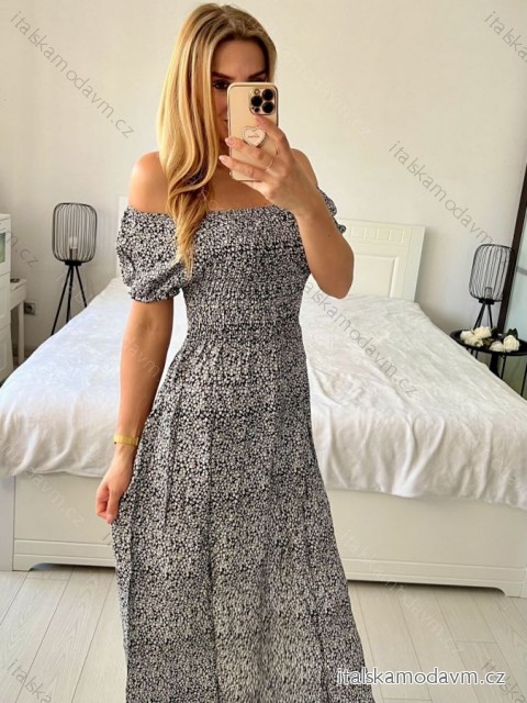 (5442) > Šaty voľnočasové krátky rukáv (2518) > Šaty volnočasové krátký rukáv (2518) > Šaty carmen žabičkované letné krátky rukáv dámske (M/L, XL/2XL ONE SIZE) IMB24B212/DUR - čierna