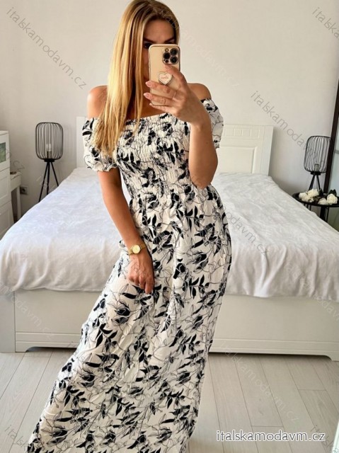 Šaty carmen žabičkované letní krátký rukáv dámské (M/L, XL/2XL ONE SIZE) IMB24B230/DUR - bílá - XL/2XL