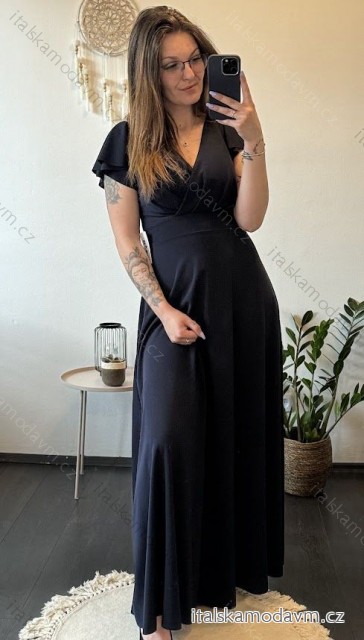 ZBOŽÍ (21863) > oblečenie dámske (17729) > šaty (9262) > Šaty dlouhé elegantní letní s rukávem s volánky dámské (S/M ONE SIZE) ITALSKÁ MÓDA IM423LAILA čierna